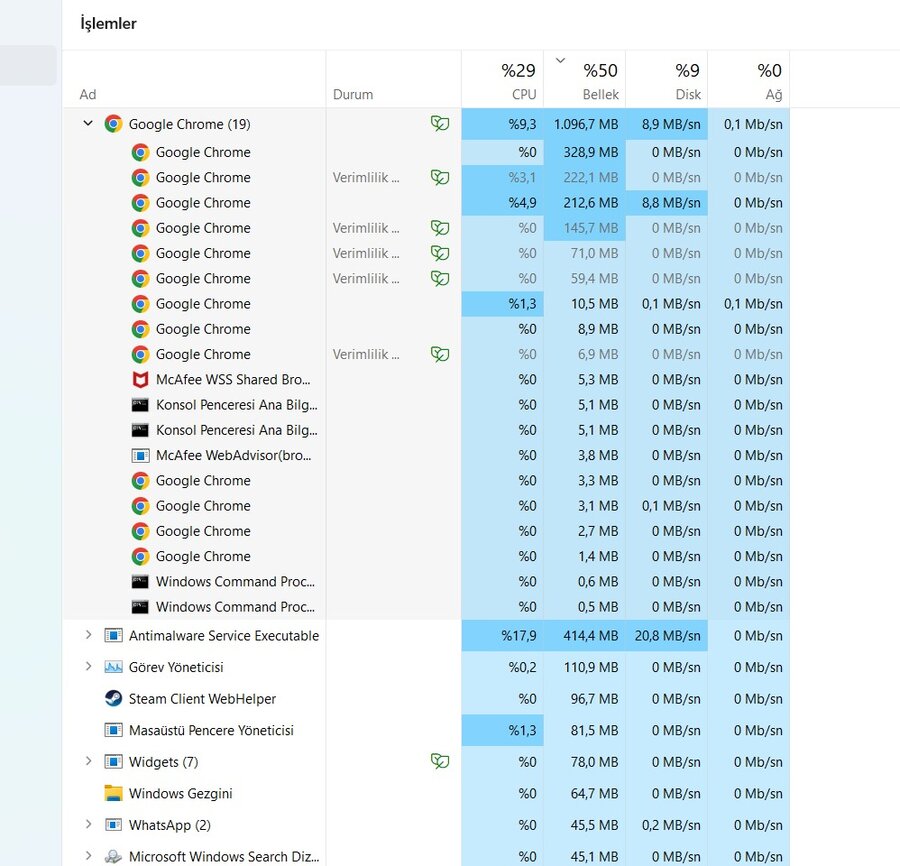 Yardım %100 CPU ve Chrome Fazla Ram Kullanımı