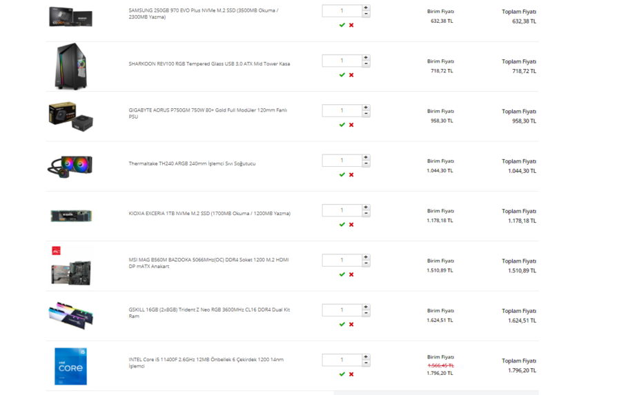 Sistem böyle oldu. Bu sistem için itopya üzerinden bir psu önerir misiniz? Marka konusunda takıntılı olduğum tek nokta sanırım psu olabilir. Önceden çok çektim. Ekstra olarak kasaya fan takmam gerekirse, kasa içindeki fanlar kalitesiz ve değişmesi gerekirse öneriniz olur mu? Ya da direk şu kasayı tercih etsem nasıl olur ? SEKIRA