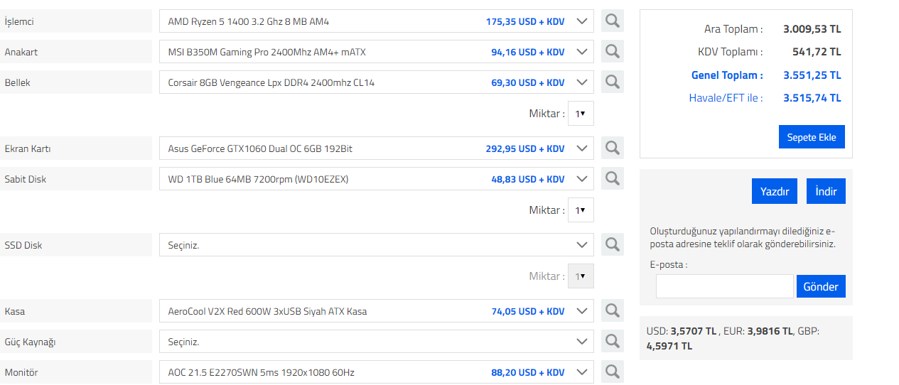 Gamer??? dedi ki: Şöyle bir sistem topladım monitörün düşük kaldı bütçemi esnetebilirim diyorsan onu yükseltebiliriz biraz: Ekli dosyayı görüntüle 23614 Genişletmek için tıkla ... Nerden topladiniz bunu ?