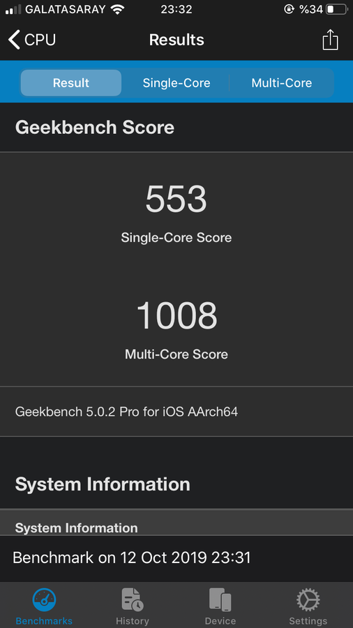 Arkadaslar yeni telefon aldım iphone 6s sonuçlar bunlar geekbench 5 pro ile ama nedese baskaların testlerine baktım onlari daha fazla sizce karsılastırın bu degerler normali telefonu vatandan aldım 0 kutu