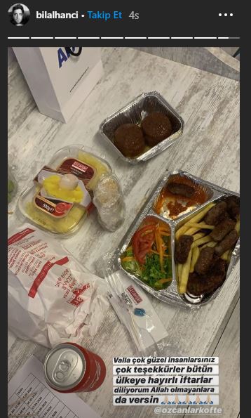 Kafalar Ekibinden Bilal, Daha sonrasında ise hikayesinde karantinada ki vatandaşlar ile birlikte hikaye atarak; "Valla çok güzel insanlarsınız çok teşekkürler bütün ülkeye hayırlı iftarlar diliyorum Allah olmayanlara da versin" diyerek hikaye paylaştı.