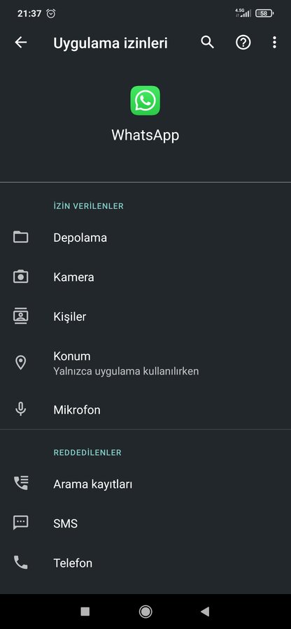 Mesela depolamaya izin vermedin. O zaman telefon hafızasındaki hiçbir veriyi paylaşmazsı (fotoğraf, video, PDF vs.)