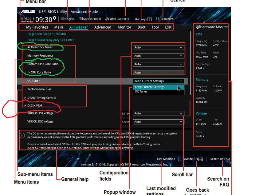 oc tuner ,kep current ayarlarını sakın elleme. onlar otomatik overclock ayarlarıdırHepsi default ne şekildeyse ,öyle kalsın. hİÇ DOKUNMA.