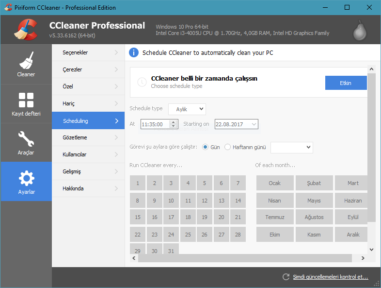 Bir CCleaner kullanıcısı olarak zamanlama sekmesinin İngilizce olması canımı sıktı ben de Türkçe dil dosyasında birkaç düzenleme yaparak Türkçeye çevirdim. İndirme linkleri aşağıda.