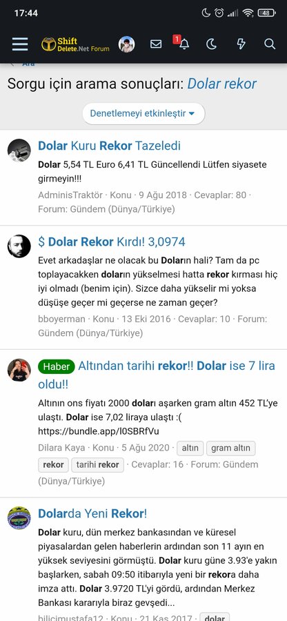 An itibari ile Doları takip edenler