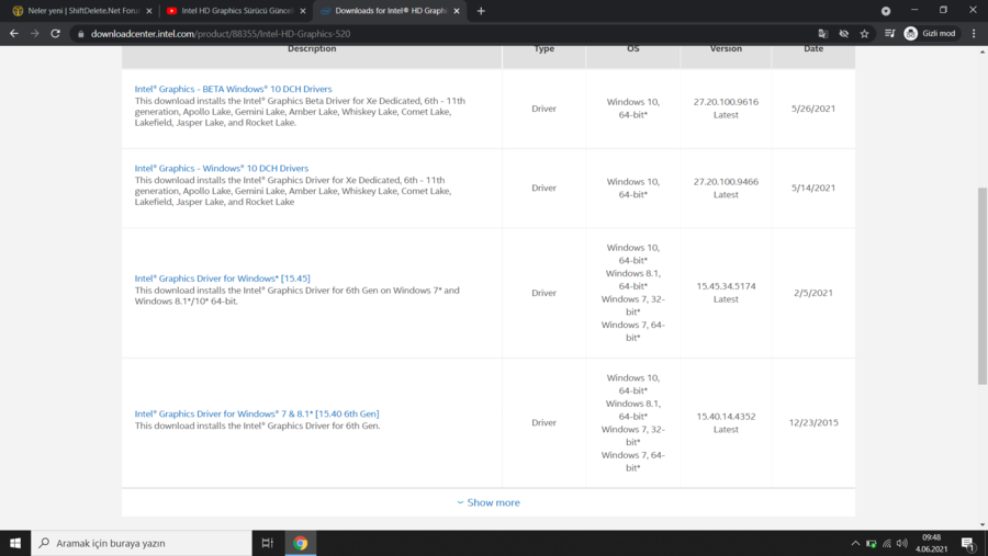 ekran kartım intel hs graphics 520 sürücü yada driverinin linkini atabilirmsiniz