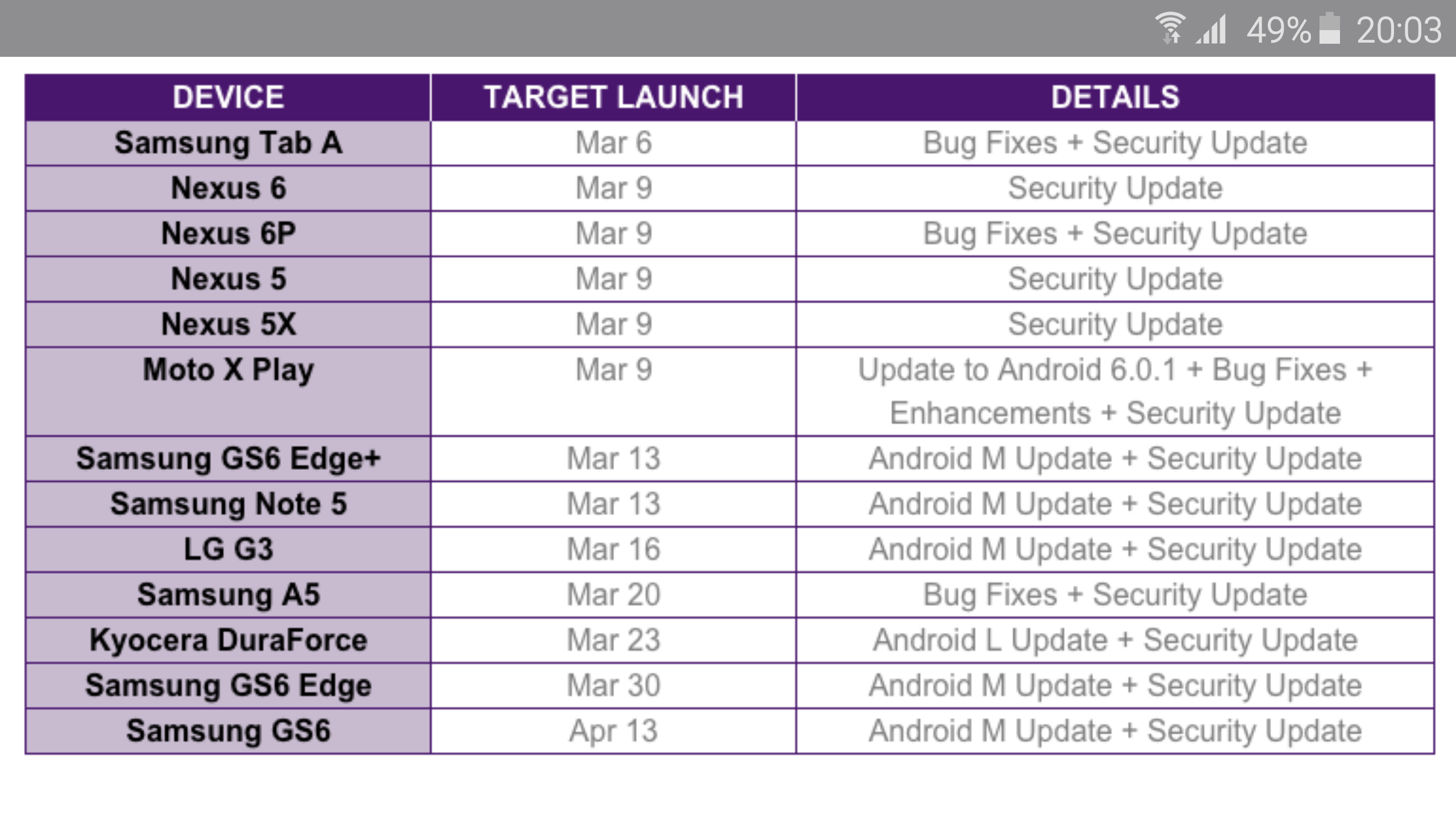 Bu tabloda nerde kanada telus yazıyor acaba merak ettim. S6 edge 30 mart, s6 13 nisan yazıyor. Gayet netBu resimdeki güncelleme tarihi Kanada'daki telus operatörünün güncelleme tarihleri bizle ne alakası varki?