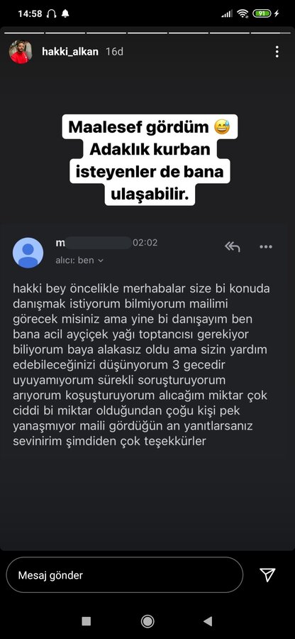 Konu çok mühim valla aman Allahım hakkı alkana mail gelmiş..
