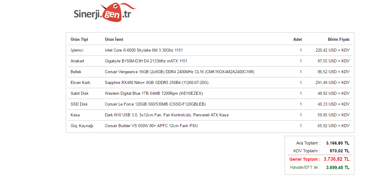 Birincisi Asus GTX1060 6GB Ekran Kartı / i5 6600 / Anakart H110 Ve Diğerleri... = 3700TL =