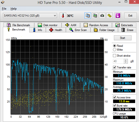 Daha sonra HD Tune programı ile yaptığım taramalarda aldığım sonuçları göstereyim.