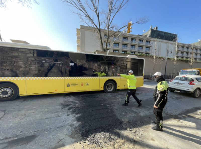 Beşiktaş'ta elektrik hattı için yapılan onarım çalışmaları sırasında çöken yol, ulaşımda aksamaya neden oldu.