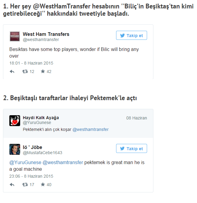 West Ham'ın Bilic'e önemli bir transfer bütçesi ayırdığını belirten gazeteler, 46 yaşındaki Hırvat teknik adamın Beşiktaş ile 2 yıl çalıştığı dönemde Galatasaray ve Fenerbahçe ile oynadığı 8 derbi maçında hiç galibiyet alamamasına da haberlerinde yer verdi.