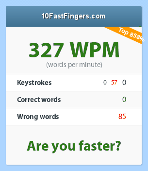 [TD="bgcolor: #F9F9F9, colspan: 2"]Hızınız diğerlerine göre 79.35%daha iyi. (Böylece 540. oldunuz. [2615 kişi içinde.] Son 24 saat)[/TD]