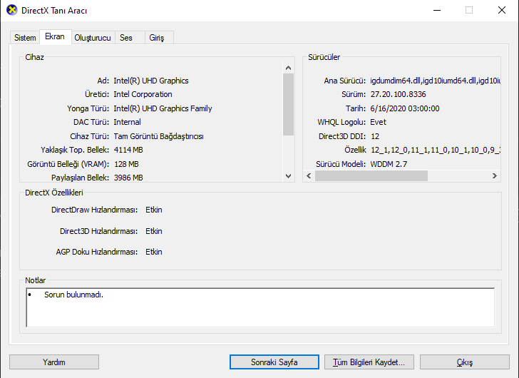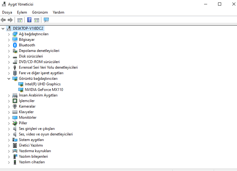 Ama dxdiag dan ekran kartına baktığımda intel uhd graphics i görüyor . Ben bunu nasıl mx110 yaparım