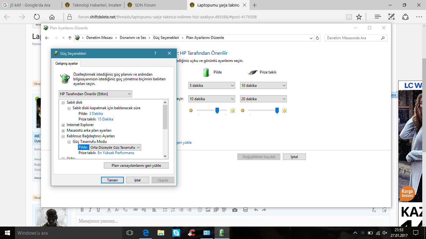 Laptopumu şarja takınca indirme hızı azalıyor