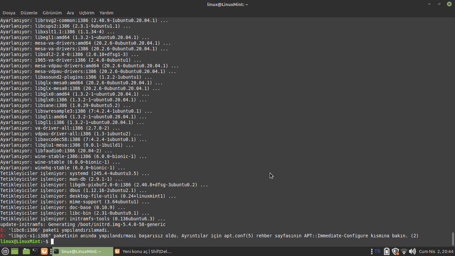 Terminal üzerinden aşağıdaki kodları kullanarak WINE kurdum ama bir hata verdi galiba kurulamadı?