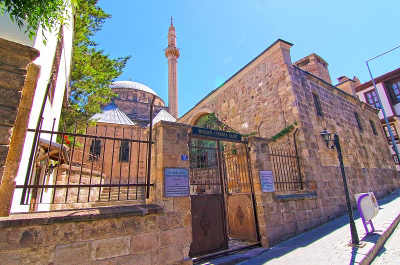Afyonkarahisar, Merkez, Mevlana Mahallesindedir. Halk arasında “Türbe” ve “Mevlevi Camii” isimleriyle de anılır.Camii 1500’lü yıllarda ahşap türbeydi daha sonra 2 Abdülhamit zamanında 1908 yılında yıkılarak camii halinde inşaat edilmiş ve bugünkü halini almıştır.Kuzey, batı ve güneyden sokakla, doğudan evlerle çevrilidir. Kuzey ve güneyden avluya girilen iki demir kapısı vardır. Kuzey kapısı aşağıda olup basamaklarla avluya, ikinci bir basamak dizisiyle caminin kapısına çıkılır. Caminin giriş cephesi doğuya bakar. Bina kesme taştan yapılmış kapısı üzerinde, kitabe yerine kabartma bir Mevlevi külahı yer alır. Tek şerefeli minaresi batıdadır. Günümüzde cami olarak kullanılan yapıyı son olarak Mimar Arif Turunç onartmıştır. Afyon Mevlevihanesi’nin, tekkelerin kapatılmasından önce diğer mevlevihaneler arasında ayrı bir yeri vardı. Semahane, matbah ve öbür bölümleriyle birlikte esasen büyük mevlevihanedir. Mevlevilik töresinde Konya’dan sonra ikinci sırayı alır.