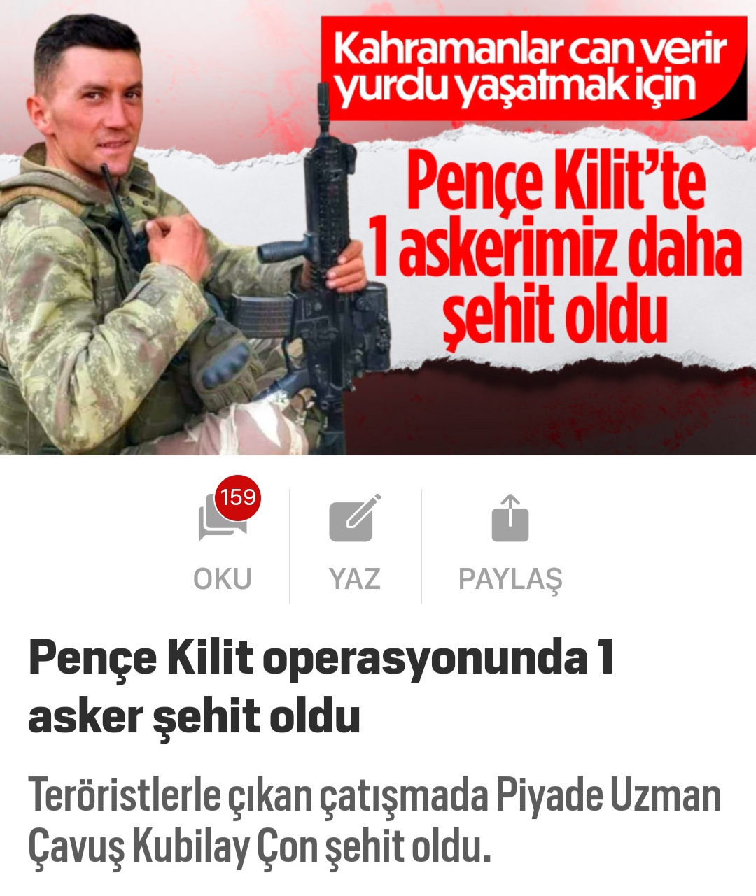 Allah razı olsun, ruhları şad olsun.Trabzonlu piyade uzman çavuş Kadir Tuncer. Ailesinin evi ile bizim evimizin arasında 100 metre bile yok. Şehit olduğunun haberi geldiğinde annesinin ağlaması asla önümden gitmez...
