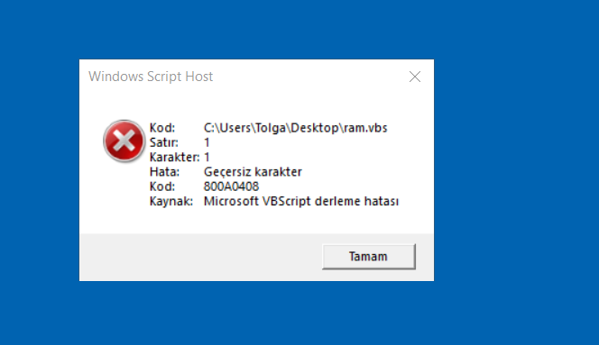 • Sonra farklı kaydet yerine gir tüm dosyalar de oradanda ismini yaz dosyanın sonuna .vbs yaz ve çalıştır.