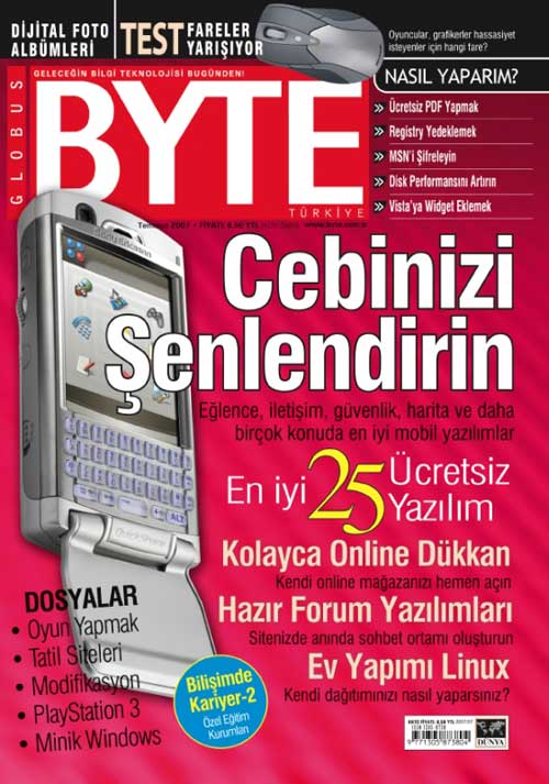 Mobil cihazlar için kullanabileceğiniz yazılımları kapak konusu yapan Byte, her şeyden önce başarılı kapak tasarımı ile göz dolduruyor. En azından, kapağın yarısını kaplayan DVD sizi etkilememiş. Bu, diğer dergilerde tam bir işkenceye dönüşebiliyor ve kapağı görmek için dergiyle biraz uğraşmanız gerekebiliyor.
