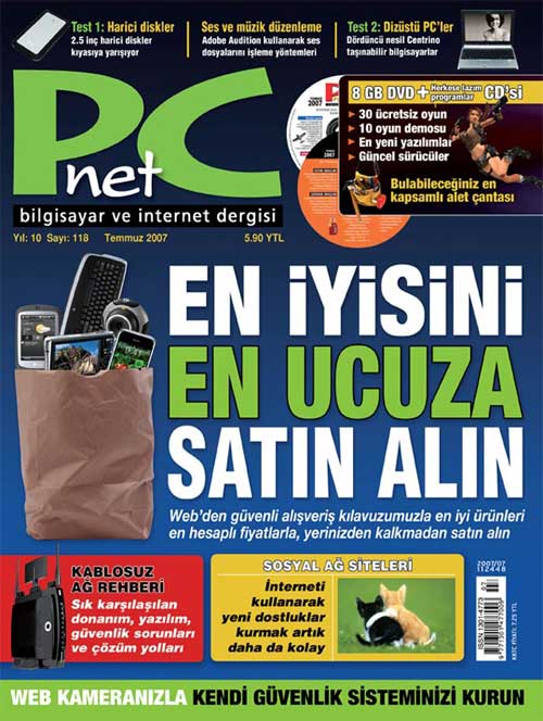 Geçtiğimiz ay beğenmediğimiz bir kapağa imza atan PC Net, bu ay dergiler arasında en iyi tasarlanmış kapağı yapmayı başarmış. Alışveriş sitelerini kapak konusu yapan dergi, en iyisini en ucuza almanın yollarını anlatmış. Kablosuz ağlar için yaşadığınız sorunları ve çözümlerin bir araya geldiği PC Net'te, arkadaşlık sitelerine de sayfalar ayrılmış.