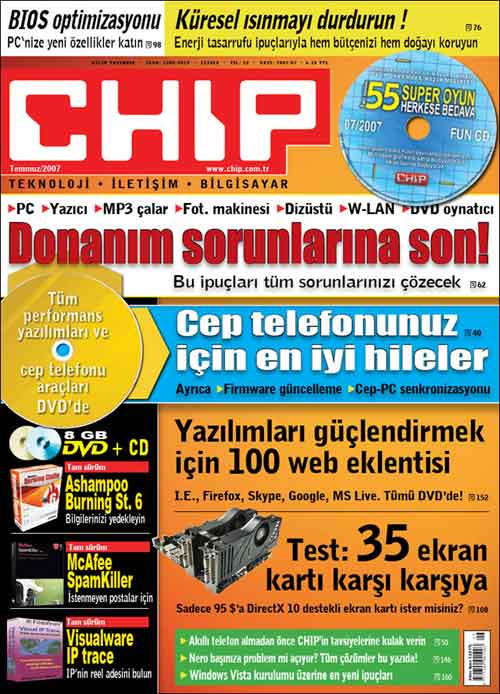 Cep telefonlarına yazılan özel kodları kapak konusu yapan dergi, sık karşılaşılan donanım sorunlarını da detaylı olarak listelemiş. Donanım sayfalarında ekran kartı testinin yanı sıra kürsel ısınmaya karşı alabileceğiniz önlemleri anlatan Chip, Bios özelliklerine değinerek bilgisayarınızın gizli özelliklerini de keşfetmenize olanak sağlıyor.