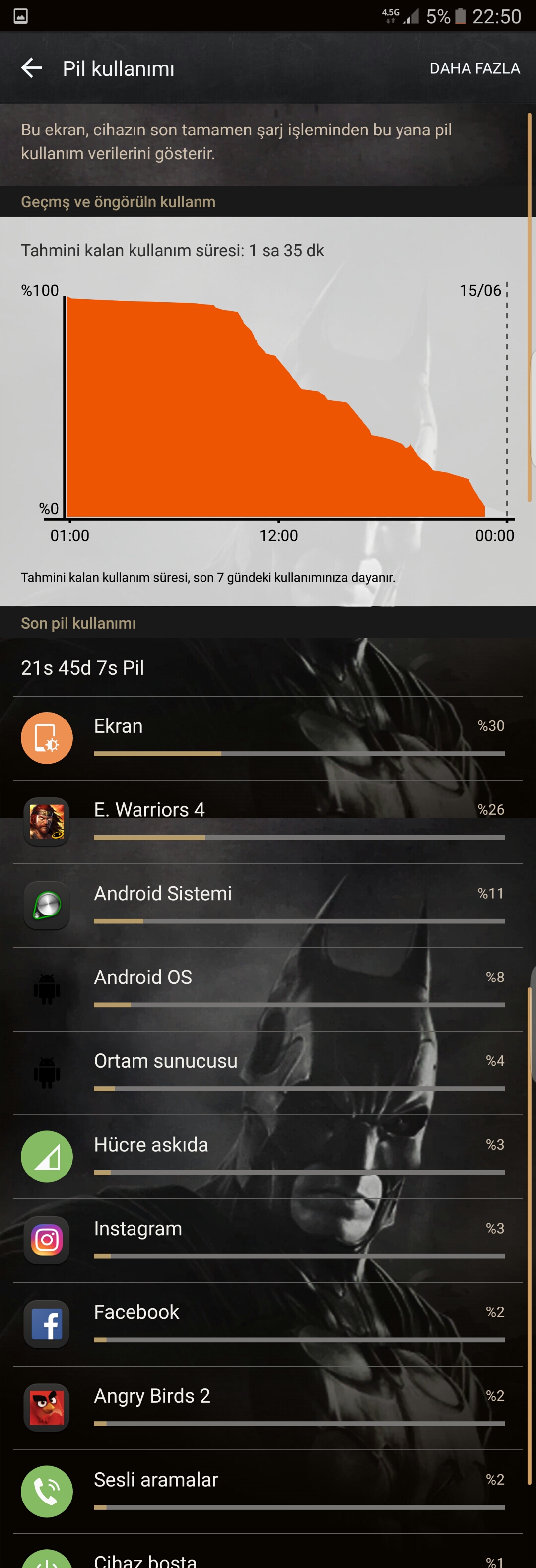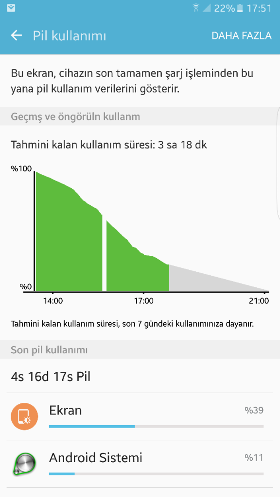 Benimde duz s7 ama cabuk bitiyor gibi geldi yaw.s7 edge böyle degildiBenim en düşük 3 saat 40 dakikaydı. Oda cihazı uzun süre güneş altında kullanmıştım. Ve bol bol fotoğraf çekimi yapmıştım. (Düz s7)