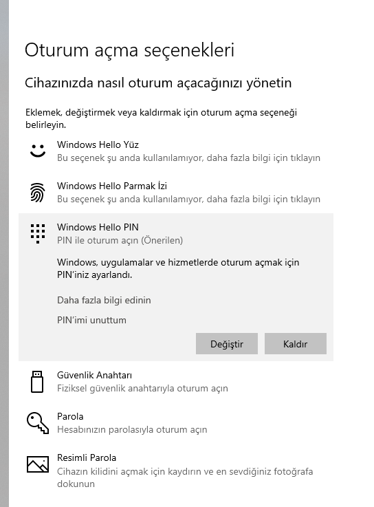 Dün bilgisayarıma format attım, her şey hazır fakat şifre koyma bölümü yok. Pin var veya ne bilim saçma hello kiti gibi seçenekler var