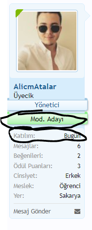 Üst bir makam olarak görmüyorum ama foruma belki de bir kere bile girmemiş birinin hemen mod yapılması hoşuma gitmedi. İlle de mod olmak istemem bir kere yaptım sanırım bir daha yapmam ama en azından 1 yıl deneyimi olanlar denense keşke.Moderatörlük bir üst sınıf değildir. Burada herkes eşittir. Moderatör olarak sadece sorumluluk üstlenmiş oluyorsun. Ha sen moderatörlüğü bir üst aşama olarak görüyorsun bi konuşmalısın Hakkı Alkanla.