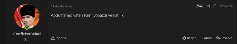 Diğerlerine gelince onlar için bir şey demedim ben. Onlar gayette tartışılabilir, eleştirilebilir. Benim kastettiğim şey Confick'in mesajı gibi şeyler. Sıfır kanıt bol iftira ve hakaret. Buyur hadi gereğini yapsana. Versene kurallar dahilinde 3 gün 5 gün neyse artık, uzaklaştırmayı. Çünkü tarihi bir kişiliğe hakaret ve iftira ediyor adam.