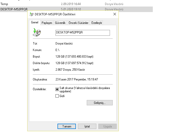 Delete diye siliniyor ama büyük dosya uyarısı alıyorum.O ama ordan direk öyle delete ile silinmiyor diye biliyorum. Onu Windows dan işte neredeyse seçeneklerinden falan silmen lazım bence