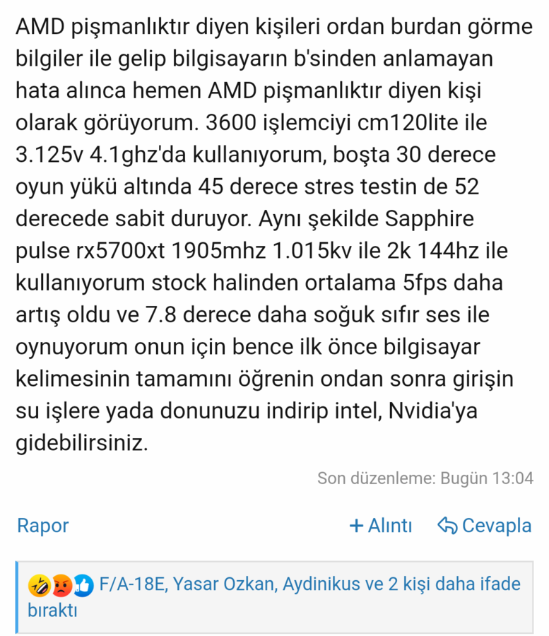 Amd pişmanlıktır diye konu açılır ve gereksiz bir kaos ortamı vardır BEN.