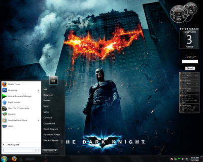 Geçtiğimiz yıl büyük başarılara imza atan yeni Batman filmi The Dark Knight'ı Windows 7 işletim sisteminizde tema olarak kullanmak ister misiniz?