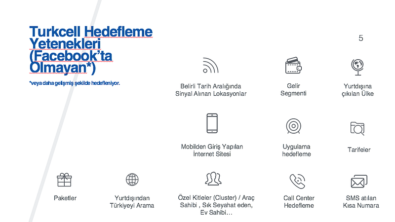 Facebook’ta bulunmayan veya Turkcell’de daha derinlikli bulunan kriterler ile reklam geri dönüşlerinin artması hedeflenen “Turkcell Hedefleme İle Facebook Custom Audience” ürün sunumuna linkten ulaşabilirsiniz.