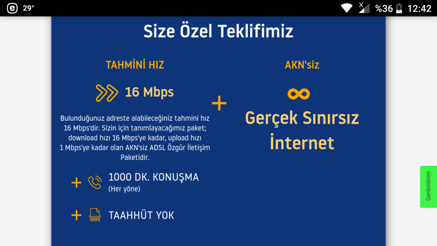 arayıp nedenini sorunDaha geçen gün 35 Mbps veriyorlardı şimdi böyle dalga geçiyorlar herhalde TTNet'ten 24 Mbps alıyorum zaten.