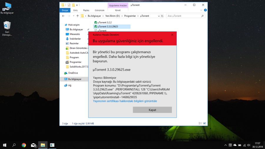 Çok öncelerden beridir kullandığım, iş yeri ve diğer bilgisayarımda da hala kullanmaya devam ettiğim uTorrent programını yeni aldığım notebookta kurmaya çalışınca böyle bir hata veriyor...