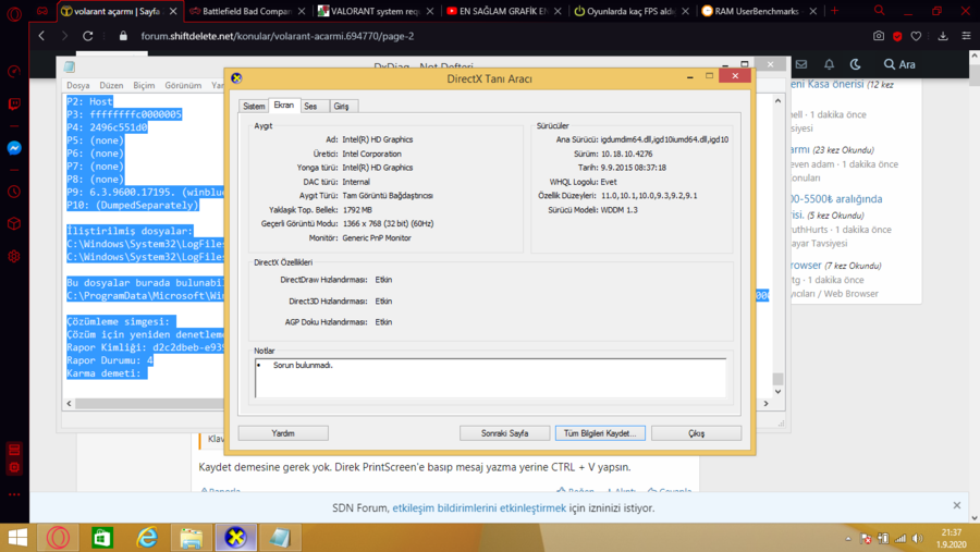 1-Kardeşim klavyenden Windows ve R tuşlarına beraber bas.intel hd grabgics 64 mb onboad