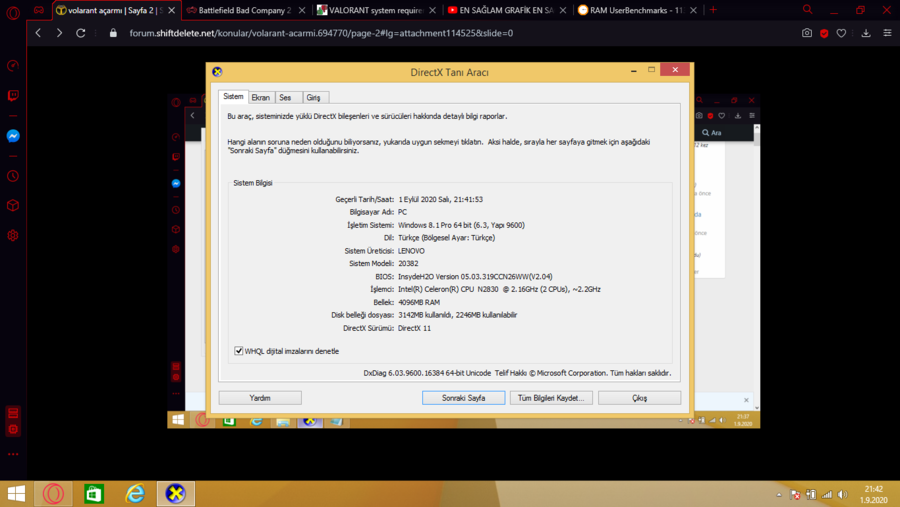 2-Açılan kutuya dxdiag yaz ve Enter'la.