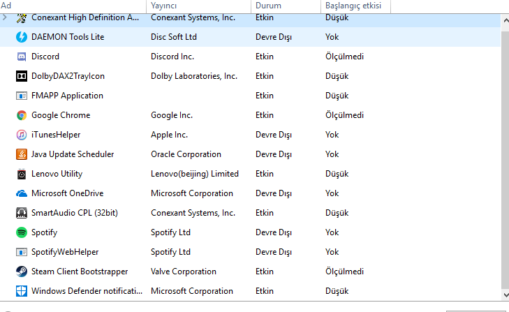 Malesef işe yaramadı başka çözümlerin var mı bu arada başlangıçta etkin olanlar bunlar