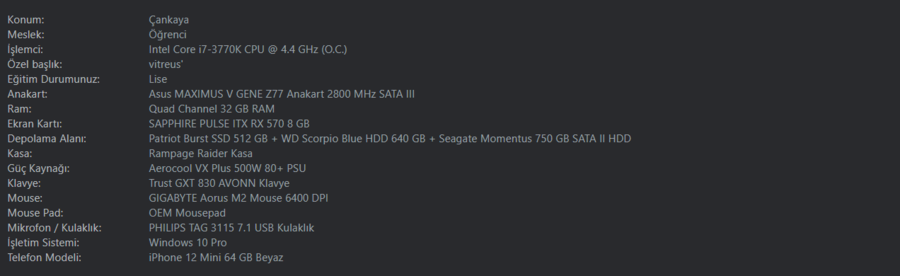 sistemlerimiz neredeyse aynı.bende r5 1600 var sadece.rx 570 8 gb asus rog strix ekran kartım var.Ekli dosyayı görüntüle 164123