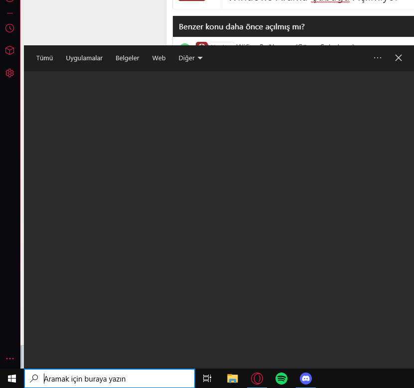 Windows Arama Çubugu Kesinlikle açılmıyor açıldıgı zamanda geri kapanıyor eklerde buraktığım şekilde kalıyor