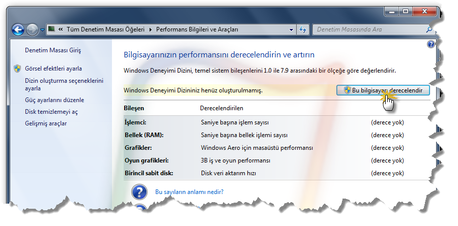 9- Açılan pencerede Bu bilgisayarı derecelendir butonuna basarak derecelendirmeyi tekrar çalıştırın.