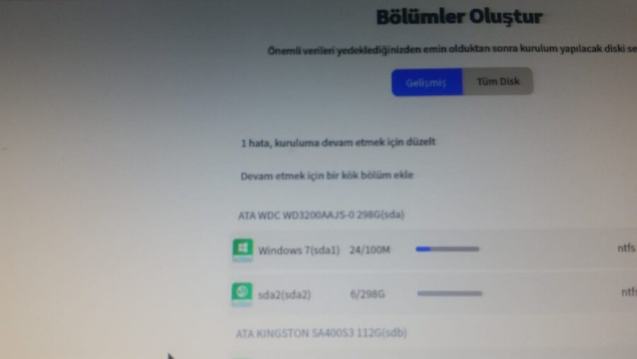 ssd yi 30gb böldüm sonra adınada yerel disk koydum ve sonuna F eklediHocam ssdyi böldüm deepin kurulum ekranına geldiğim zaman 1 hata kök seçin diyor?