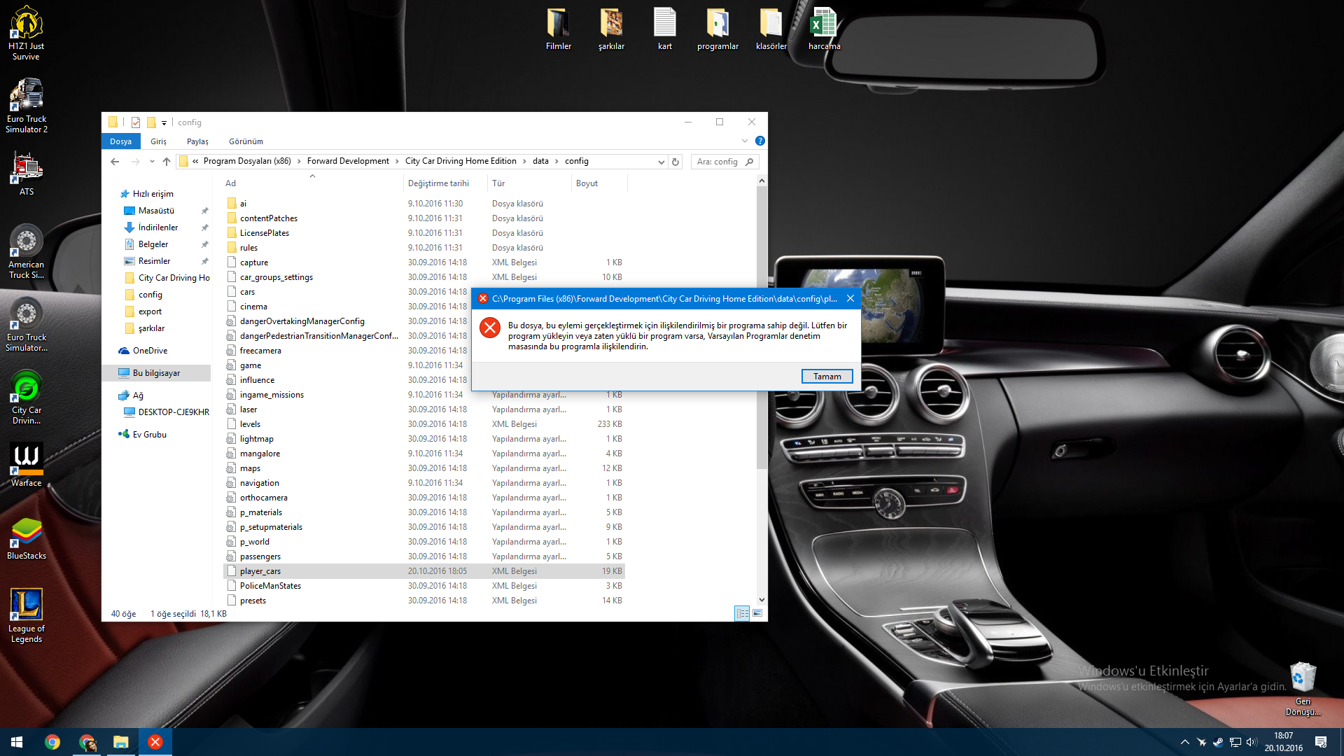 Arkadaşlar CCD oyununa sahibim (orjinal). Her mod yüklediğimde player cars dosyası xml şeklinde olduğu için fotoğraftaki hatayı veriyor. Birlikte aç>not defteri yapmam gerekiyor. Bu dosyayı not defterine nasıl çevirebilirim ? Çevirirsem oyunda modların gözükmeme ihtimali var mı ?