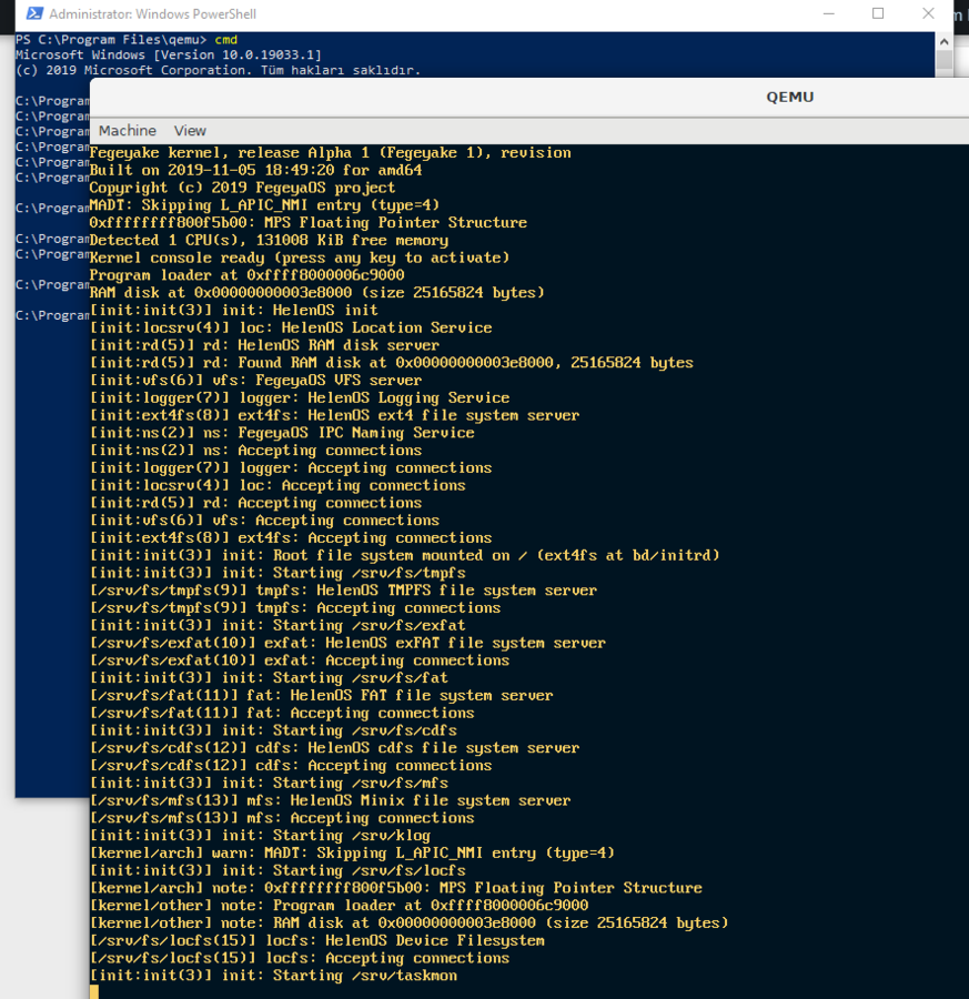 HelenOS bir mikroçekirdek olduğunu belirttim, FegeyaOS bir monolitik türevi olan femonolitik bir çekirdek. Önyükleyicideki hazır alınan kaynak kodların kendi kodlarımız ile değiştirildiğini belirttim, yanlış anlaşılma olduğunu düşünüyorum.Sayfanın başından beri hangi mikrokernelin kullanıldığı ve bunun ne olduğu soruldu? Sıfırdan mı oluşturuldu yoksa diğer mikrokernellerden biri üzerine mi kuruldu diye. Siz sıfırdan olduğunu söylediniz hep. Ama şimdi bunun başka bir mikrokernel üzerinden yapıldığını ve bu çekirdekteki kodların kendi kodlarınız ile değiştirdiğinizi belirttiniz.